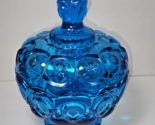- L.E. Smith Moon and Stars Compote Blue Glass Candy Dish with Lid 7" Tall chips