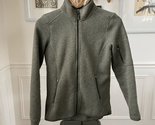 Women?s L.L. Bean 100% polyester, full zip jacket. Fleece on the inside and the outside resembles a certain very popular outdoor brand better sweater material. Zip hip pockets and a zipper media pocket at one bicep. Measurements are approximate and taken while laying flat: 25 inches from shoulder to hem, and 19 inches armpit to armpit.