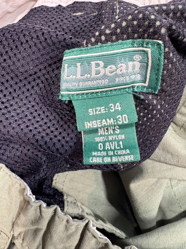 - L.L. Bean Pants Olive Army Green 100% Nylon Outdoors Hiking Utility Men's 34x30