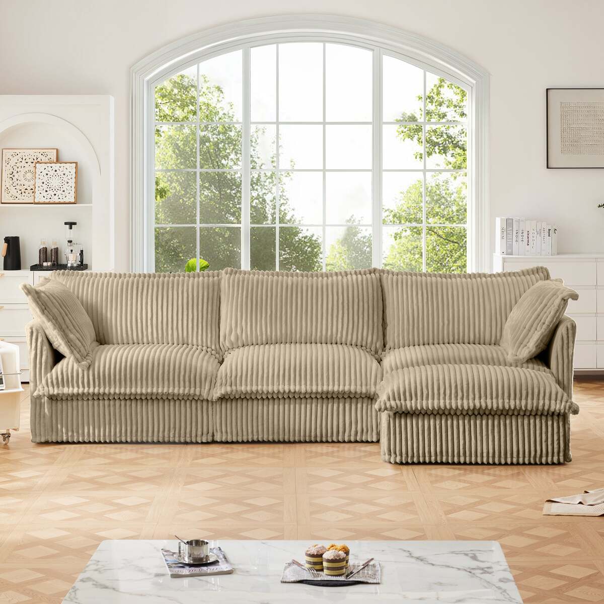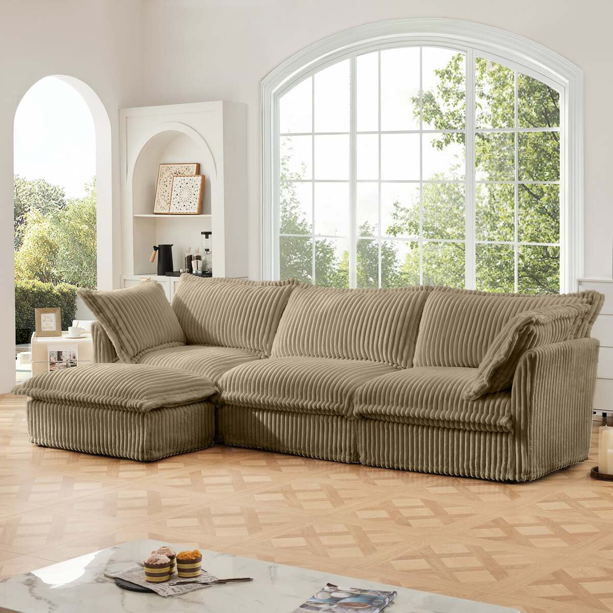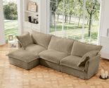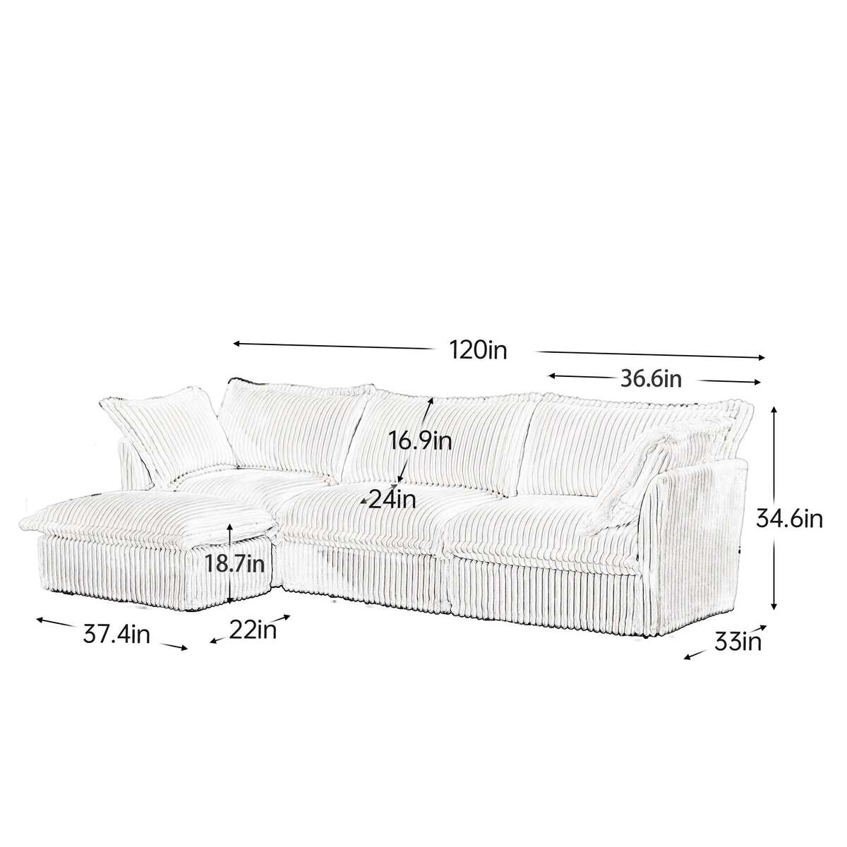 - L-Shaped Slipcovered Cloud Couch Sectional Sofa w/ Ottoman
