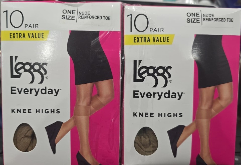 - L'eggs Everyday Women Nylon Knee Highs Stockings Reinforced Toe 10 Pack Lot of 2