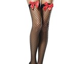 Black Fishnet Thigh High Stocking with Red Satin Bow