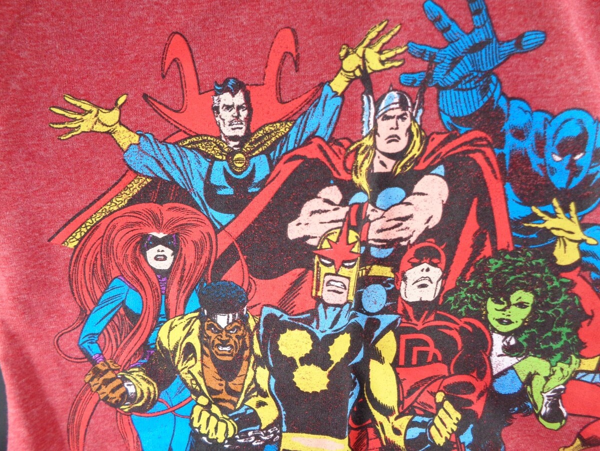 LADIES TEEN Avengers Marvel Comics T-shirt XS Thor She Hulk Dare Devil Red New