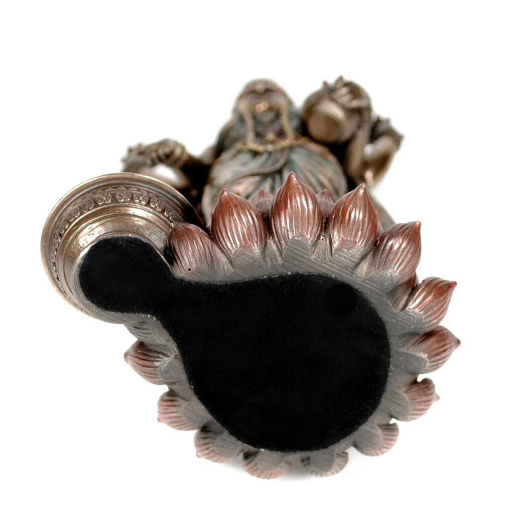 This beautiful statue of the Hindu Goddess Lakshmi is made from cold cast resin with bronze plate. It is made with superior craftsmanship and has excellent details and good weight.