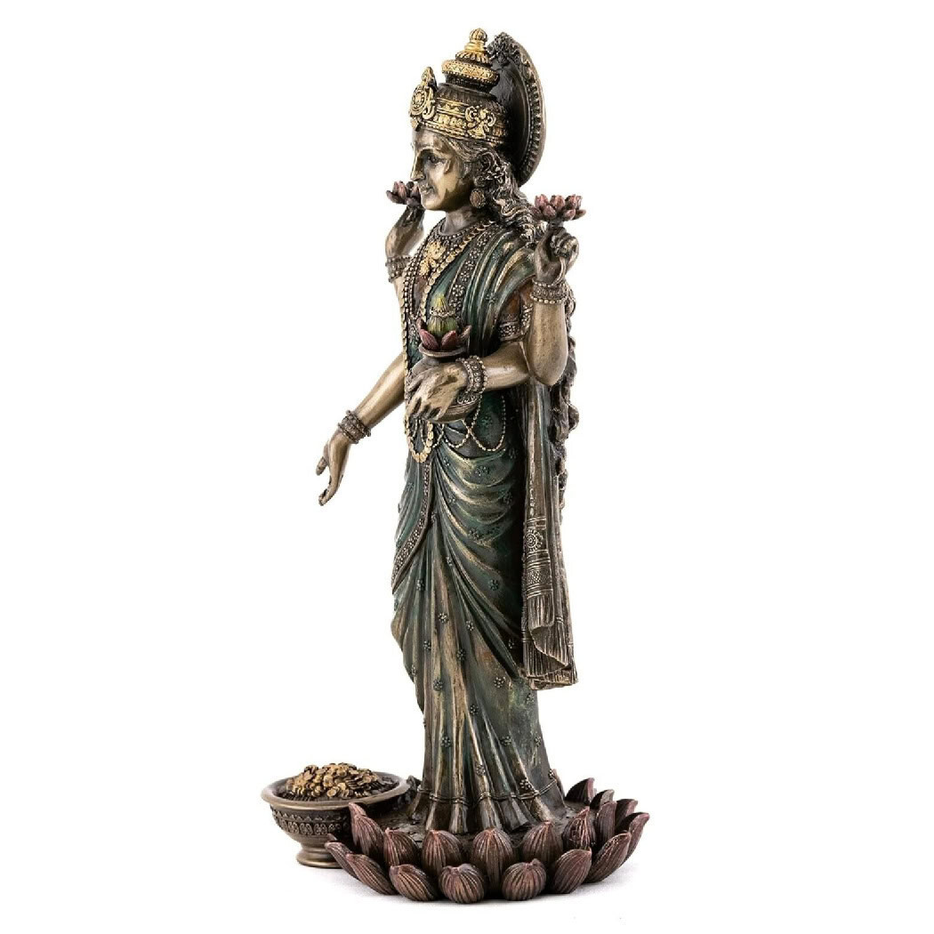 LAKSHMI STATUE 10" Hindu Indian Wealth Goddess High Quality Bronze Resin Laxmi