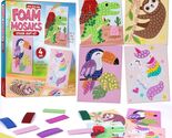 4 COMPLETE CRAFT KIT: Package comes with 29+Pcs to make 4 kinds different foam mosaic stickers, which could create Unicorns, dinosaurs, Woodpecker, Sloth types. More options, more creativity and fun. Each separate packages also ensure crafting convenience, making it perfect for gifting or distributing among kids aged 3 plus.