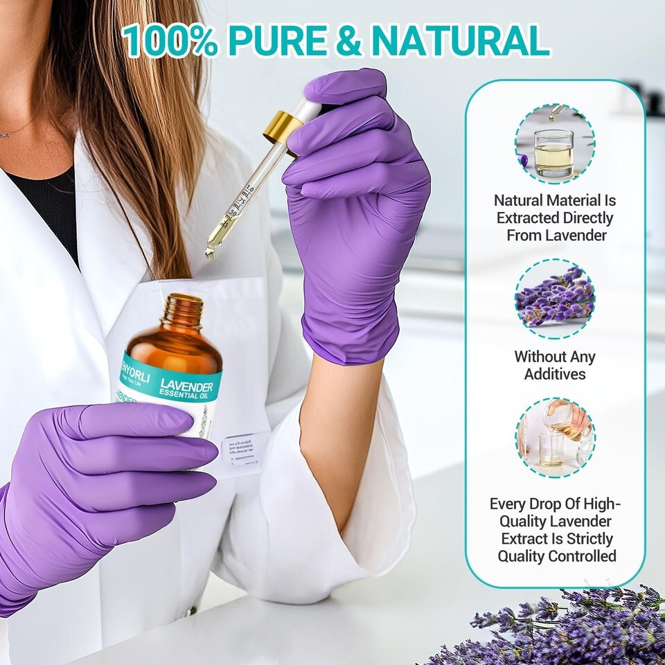 Thoughtful Design: Our lavender essential oil is housed in a 3.38 fl oz (100ml) UV-blocking amber glass bottle, the included premium glass dropper enables effortless, spill-free measurement, it's perfect for crafting precise aromatherapy blends, DIY recipes, or diluted skincare applications