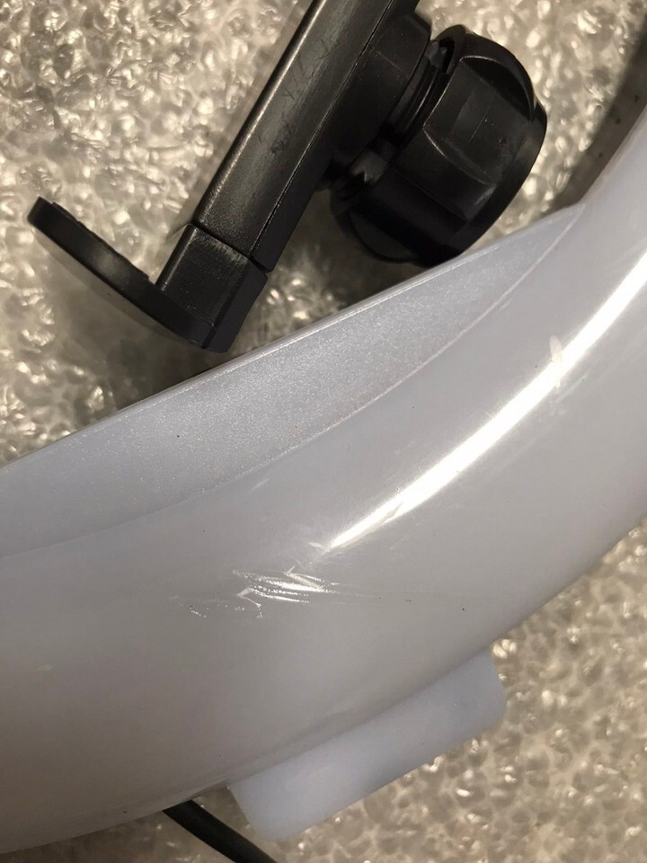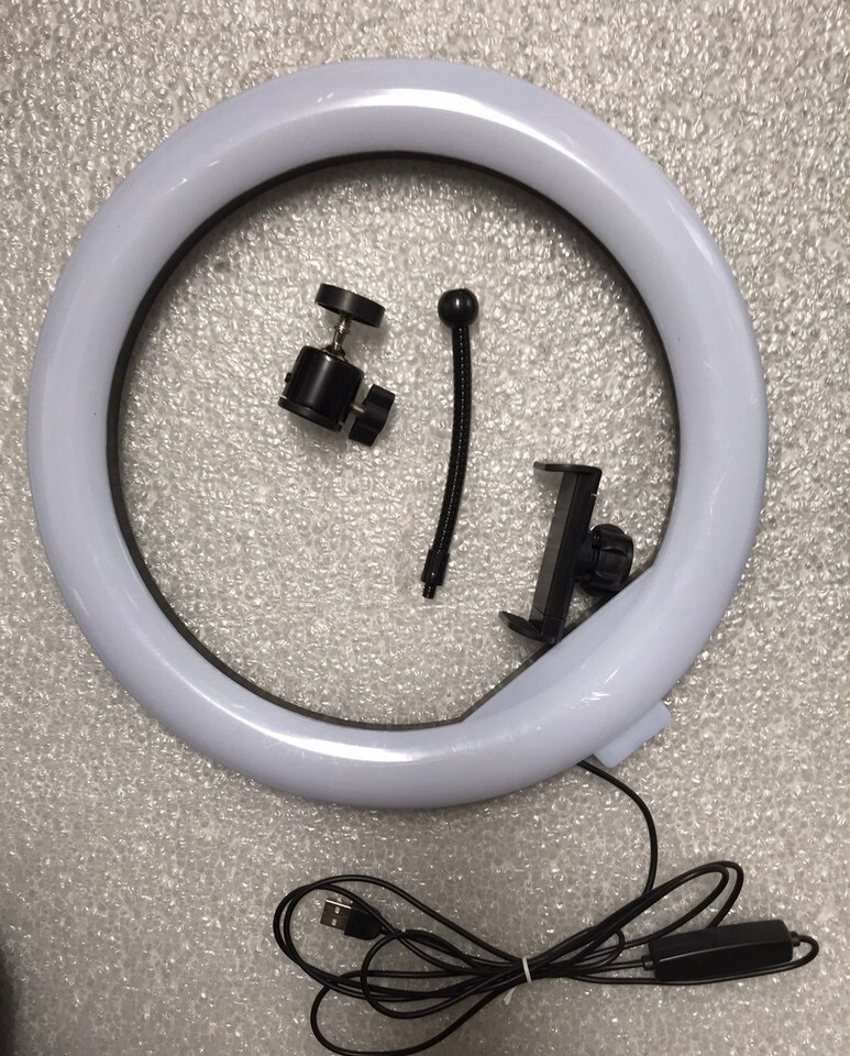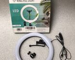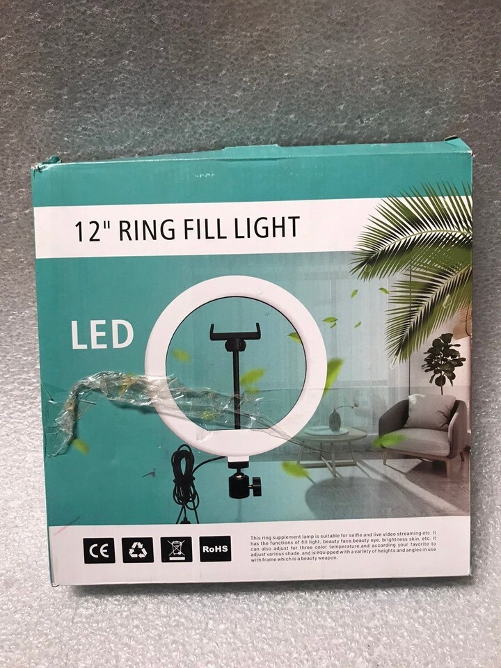 LED 12-Inch Ring Fill Light w/ Phone Holder. Works! Gently used. This is just the Ring Light. Tripod NOT included. See photos. Box opened. Some scratches on plastic of ring.