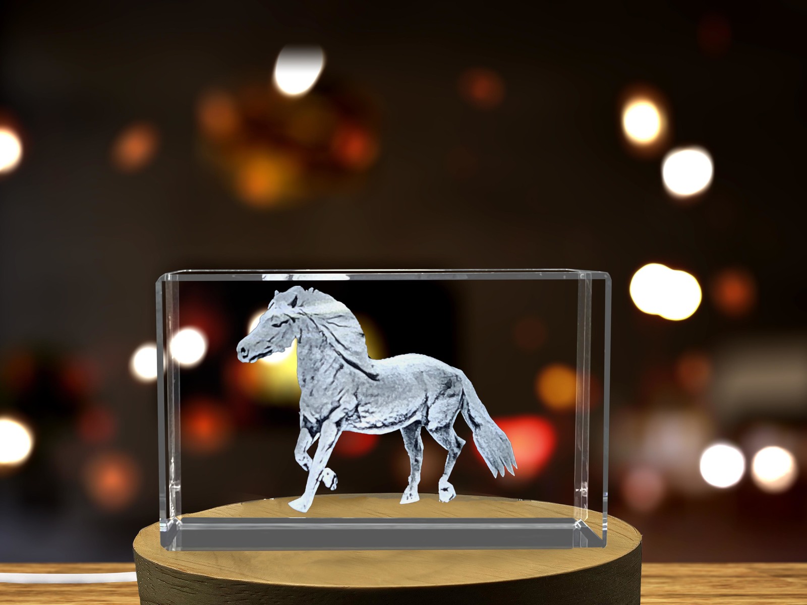 - LED Base included | Haflinger Horse 3D Engraved Crystal Gift - Golden Horse