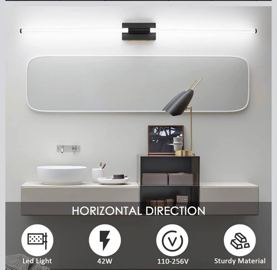 LED Bathroom Vanity Light 59 inch 42W 5500K Cool White Washroom Vanity Lights Fixture Modern Wall Lighting Fixture Modern Black Wall Sconce for Bathroom, Bedroom, Hallway, Kitchen