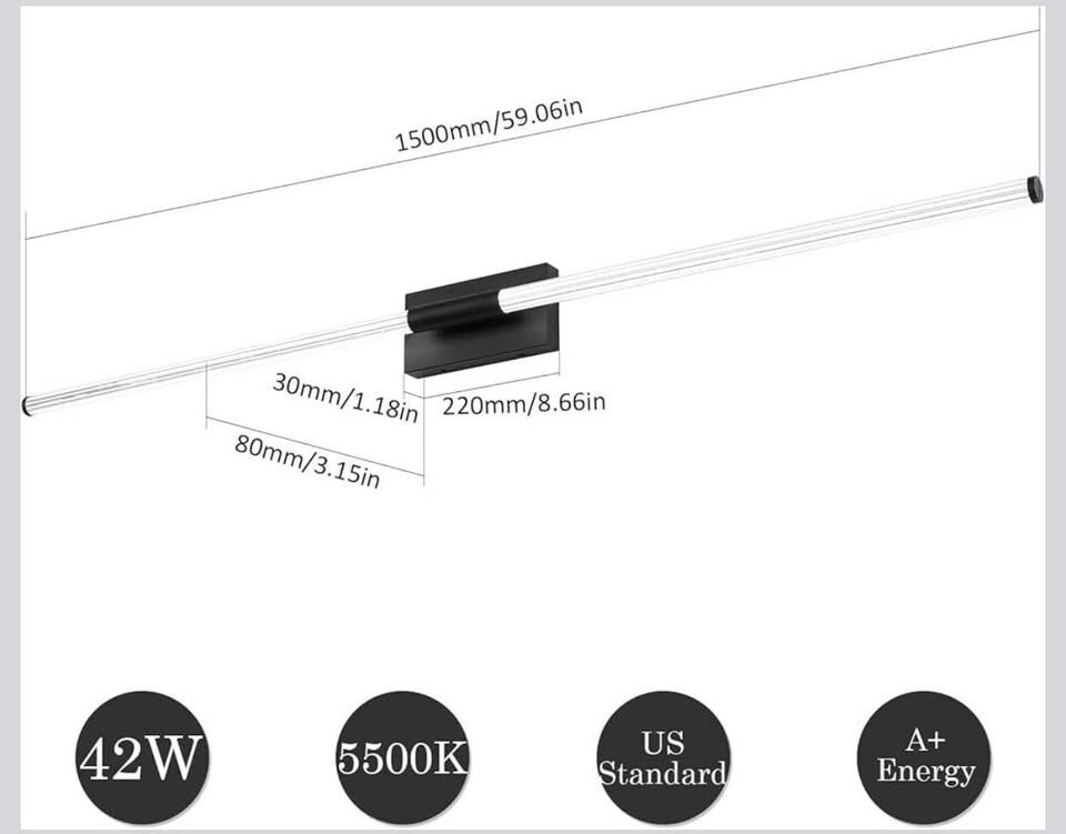 - LED Bathroom Vanity Light 59” 42W 5500K Cool White Bathroom Vanity Light Fixture