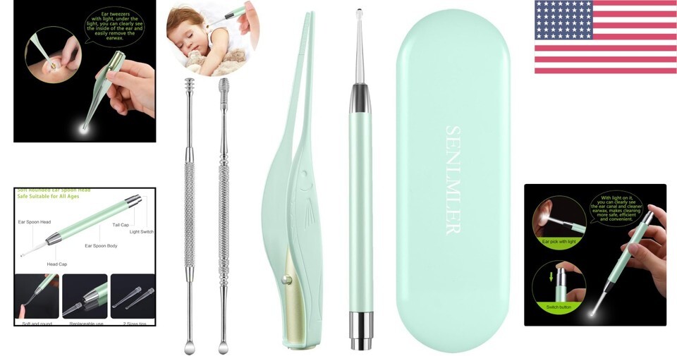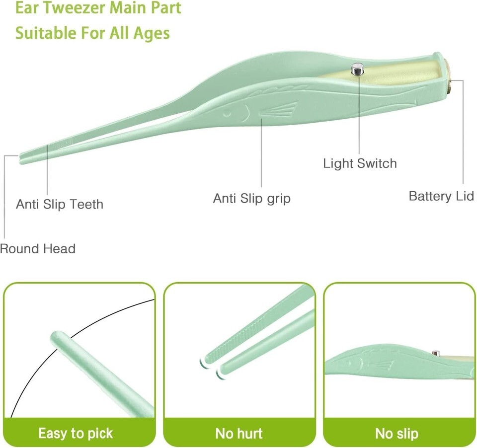 LED Light Ear Tweezers: Practical and user-friendly, these tweezers have an anti-slip design and LED light to effectively pick ear wax for a superior cleaning experience.