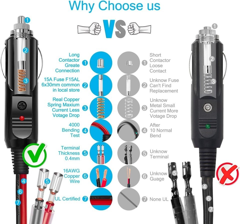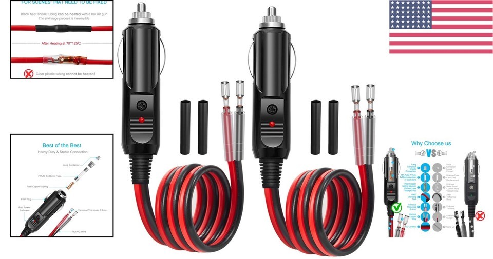 Items Included: Black Heat Shrink Tubing,2 Pack Cigarette Lighter Plug,Heat Shrink Tubing