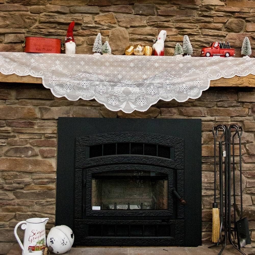 - LED Lighted Fireplace Mantel Scarf Snowflake Wreath Lace Christmas Holiday Decor