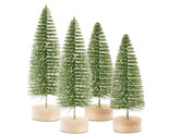- LED Lighted Green Bottle Brush Tree with Wood Base and Gold Accent (Set of 4)