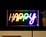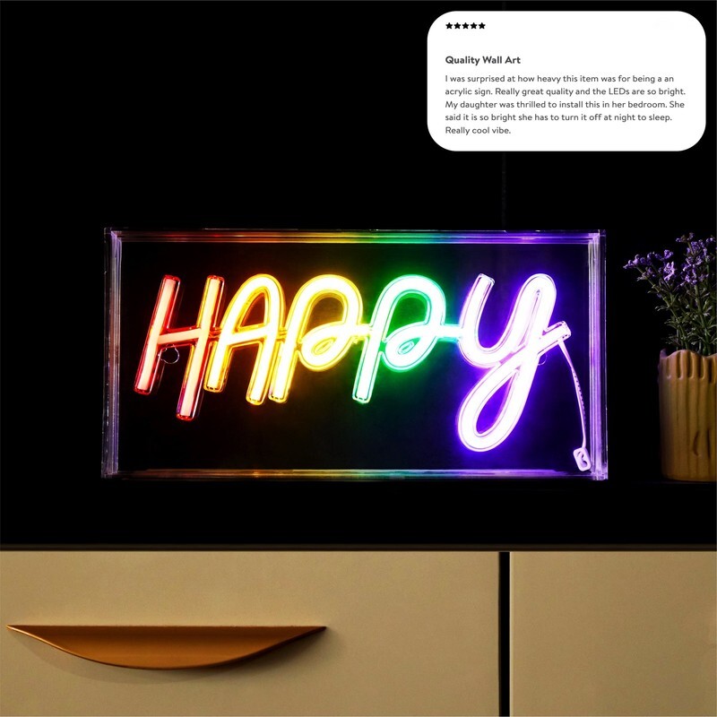 - LED Neon Happy Light-Up Clear Acrylic Box, Rainbow