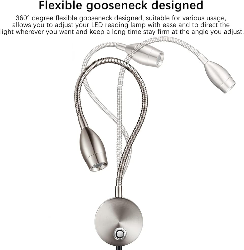 - LED Reading Lights,Wall Moount Lamp with Flexible Gooseneck,Touch Dimmable Switc