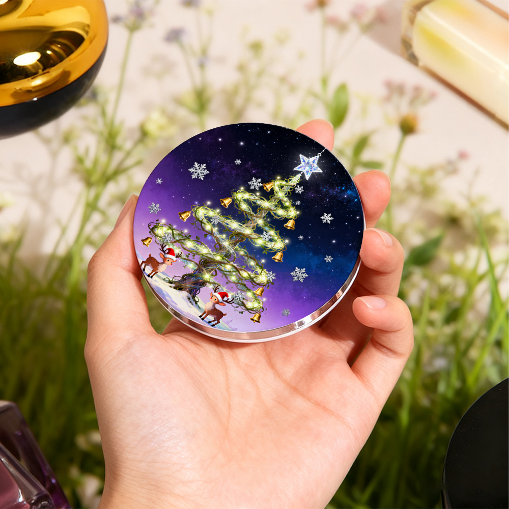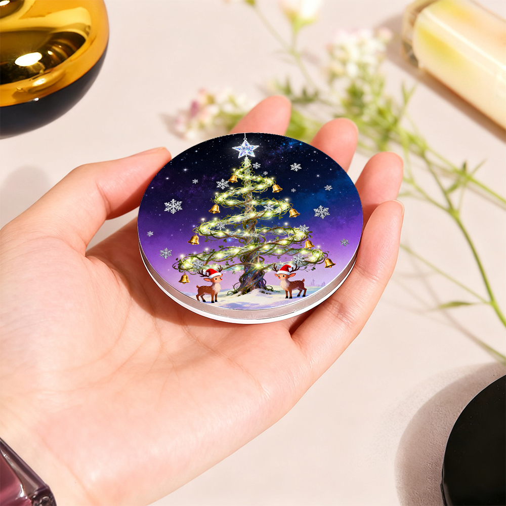 LED lighted makeup mirror with 1X/2X magnification, rechargeable.