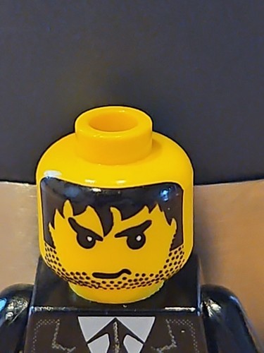- LEGO Knights Minifigure Head Yellow Male Black Hair/Stubble