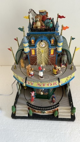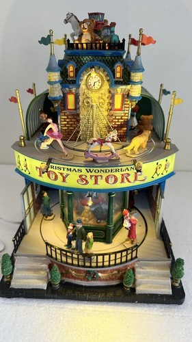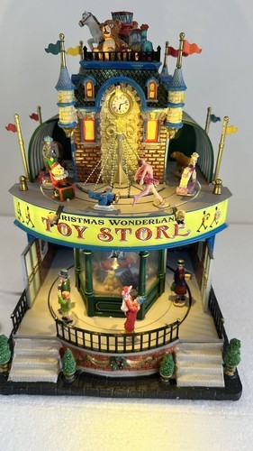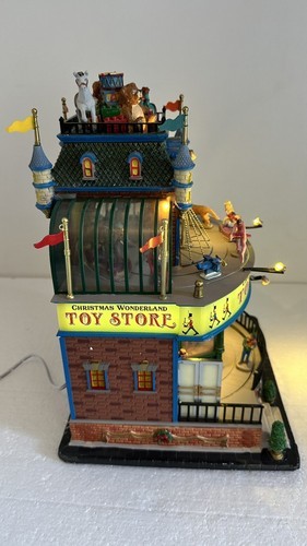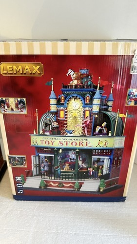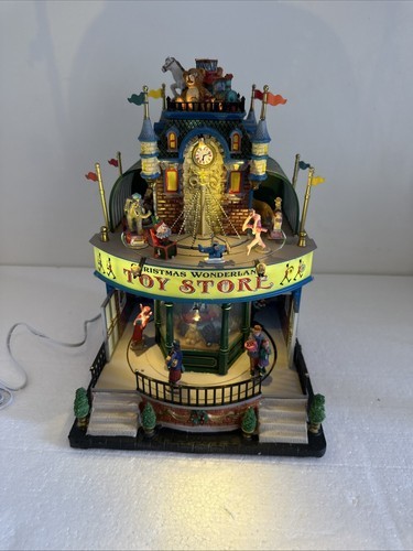 Lights, music and movement all work. Include Lemax power supply. Add a unique touch to your Christmas Village with this Large LEMAX Holiday Village Town Christmas Wonderland Toys Store. The store features an asymmetrical shape with a multicolor abstract pattern and a matte finish. It is suitable for Christmas Village Scenes and perfect for adding a festive touch to your holiday displays.