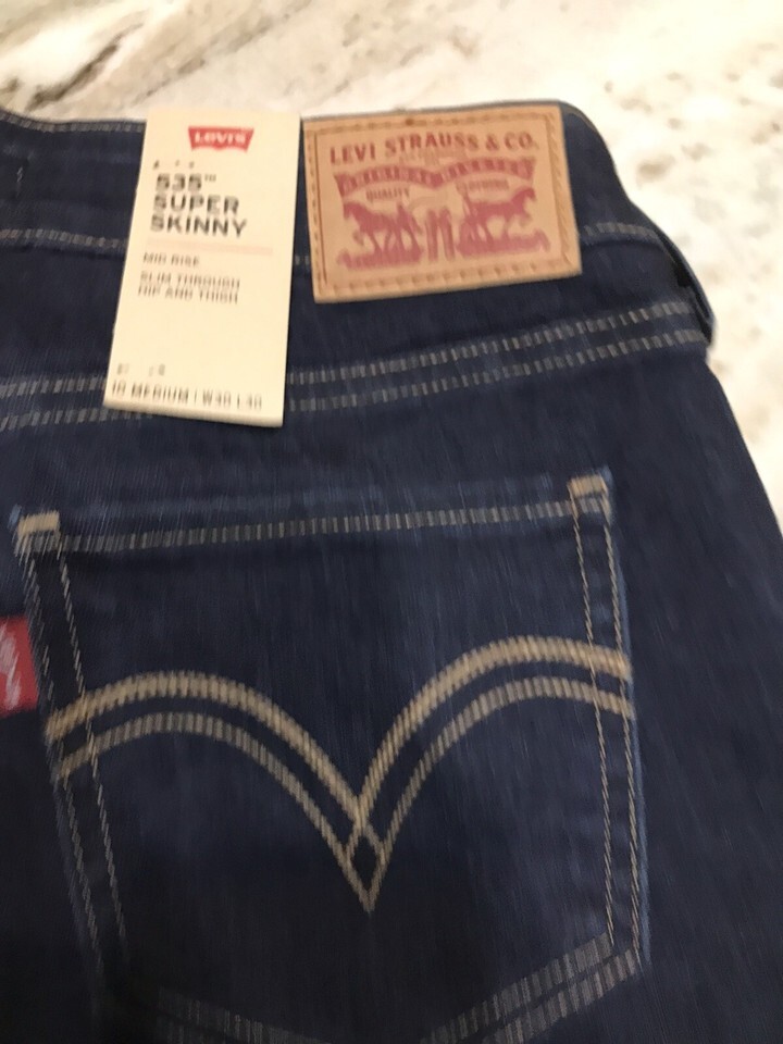 - LEVI'S Blue Denim 535 Mid-Rise Super Skinny Slim Thru Hip Thigh Jeans S W30 L30