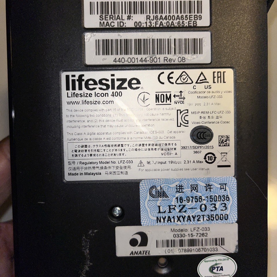 LIFESIZE LFZ-033 Icon 400 Camera Black Webcam TV ( No Power Adapter)