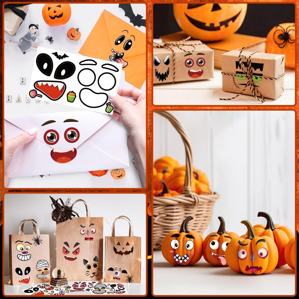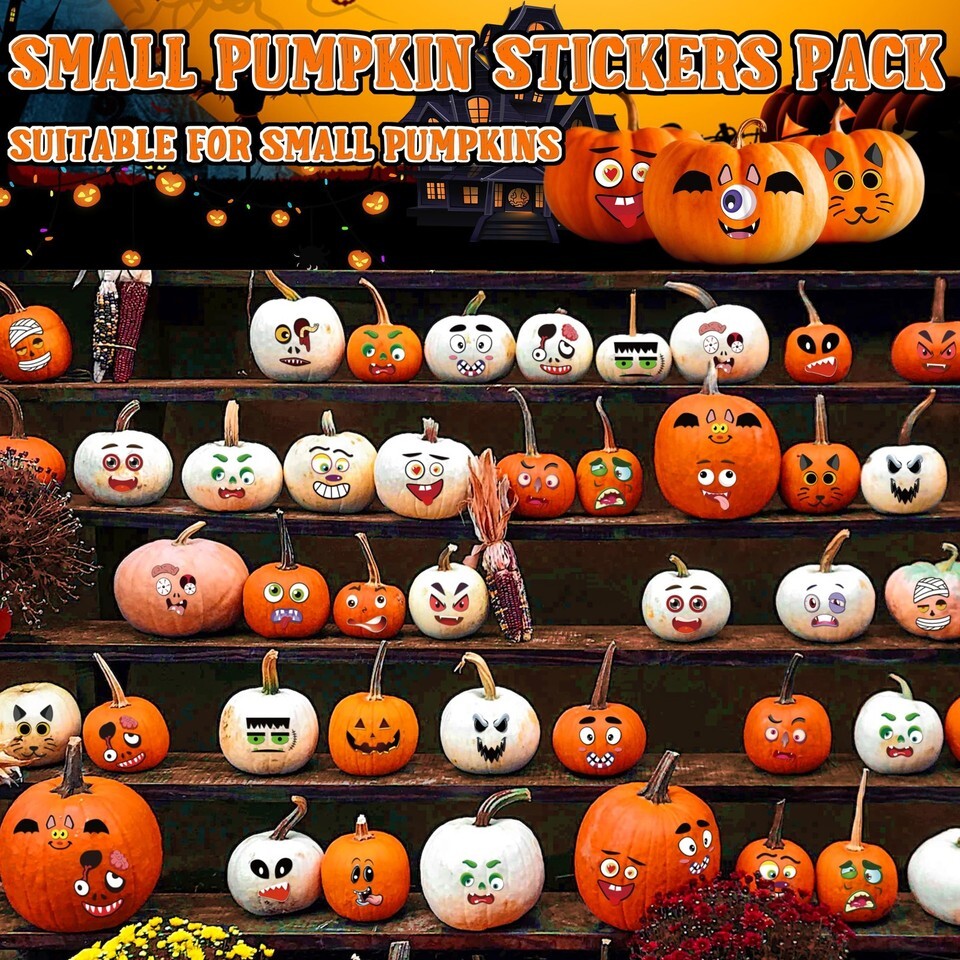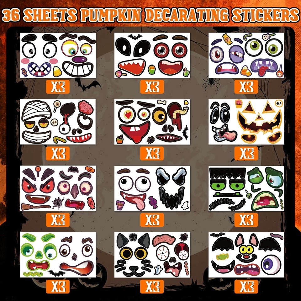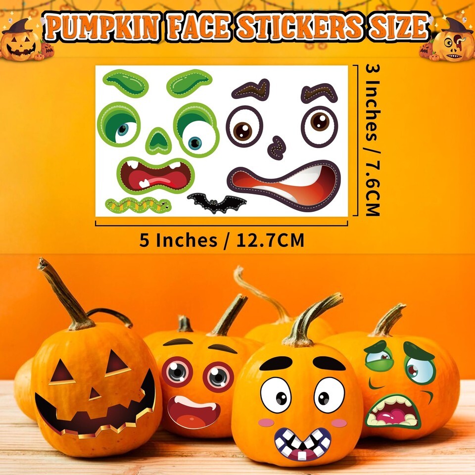 Pumpkin Decorating Stickers Kit - Package includes a pack of 36 sheets small pumpkin decorating face stickers for the little pumpkins. Each pumpkin sticker sheet has 2 sets of Jack O Lantern expression stickers with different designs. There are 24 different pumpkin face stickers in total. Perfect Halloween party games and Halloween gifts for toddlers and kids! Let the kids decorate their own pumpkins!