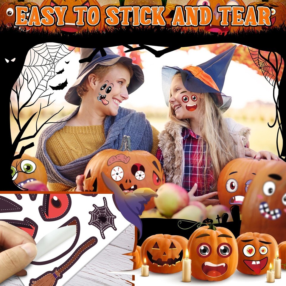 Premium Pumpkin Face Stickers for Kids - Made of high quality material, These pumpkin stickers are durable, easy to peel off and support repeated adhesion without leaving traces. Safe for kids.These pumpkin face stickers are made of waterproof materials and not afraid to get wet
