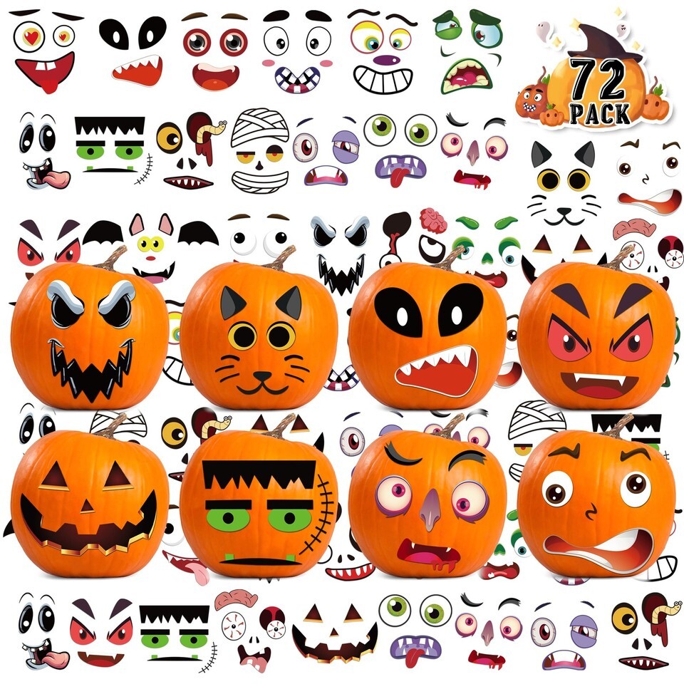 - LINAYE Halloween Pumpkin Face Stickers Small Mini 72 PCS Decorating Kit