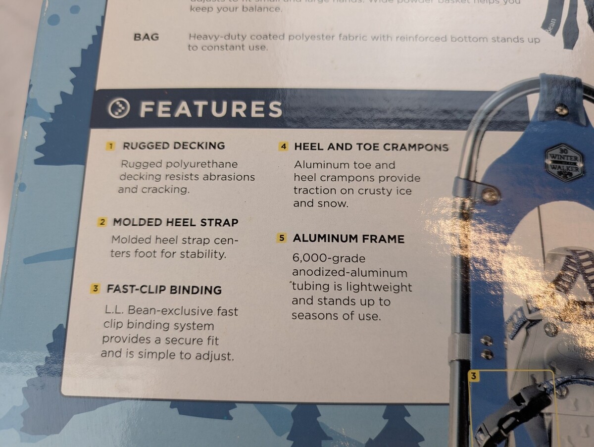 Up for sale is an LL BEAN Winter Walker Snowshoe Package Men Blue Adult 30 (30") Slate Blue