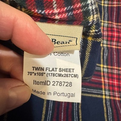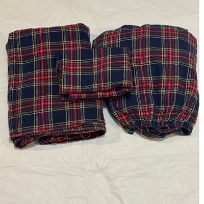 - LL Bean 100% Cotton Thick Flannel Twin Sheet Set Tartan Plaid Red Blue Winter