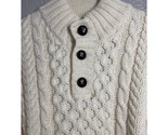 - LL Bean Cable Knit Fisherman Sweater Mens Ivory Henley 100% Wool Ireland Size L