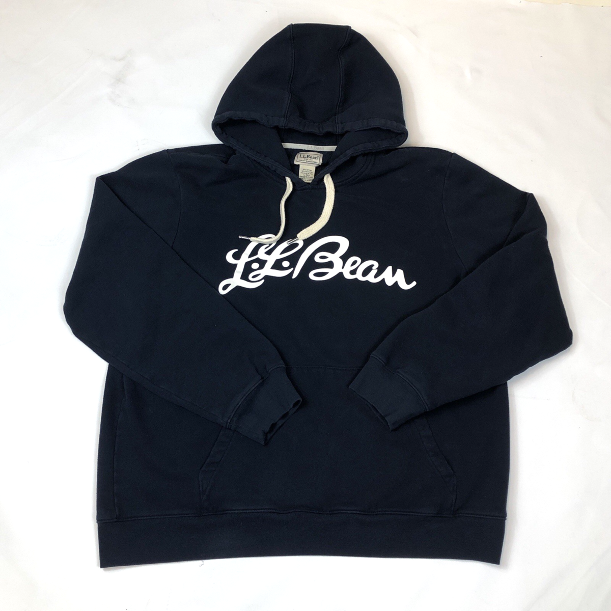 - LL Bean Mens Spellout Script Navy Blue Hoodie Sweatshirt Size Large Outdoor