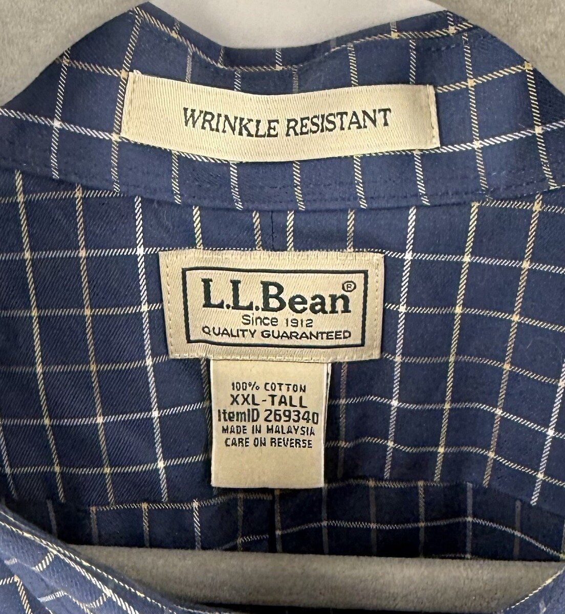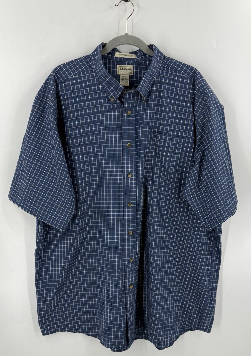 - LL Bean Mens Wrinkle Resistant Checkered Shirt Size XXL Tall Blue Short Sleeve