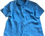 - LL Bean Shirt Women XL Blue Linen Short Sleeve Button Down Casual Pocket Top