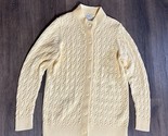 - LL Bean Womens M Cable Knit Cardigan Sweater Cotton Button Front Butter Yellow
