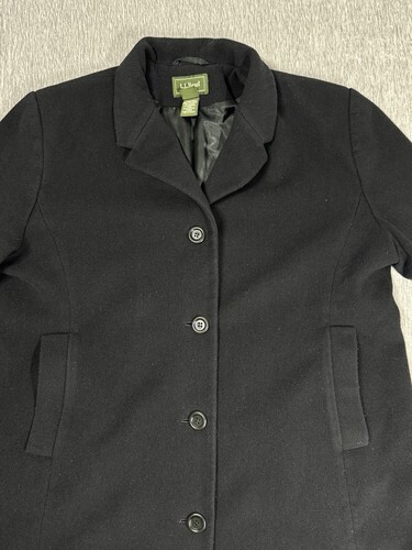 - LL Beans Coat Women 18 Petite Black Cashmere Wool Single Breasted Pockets Winter