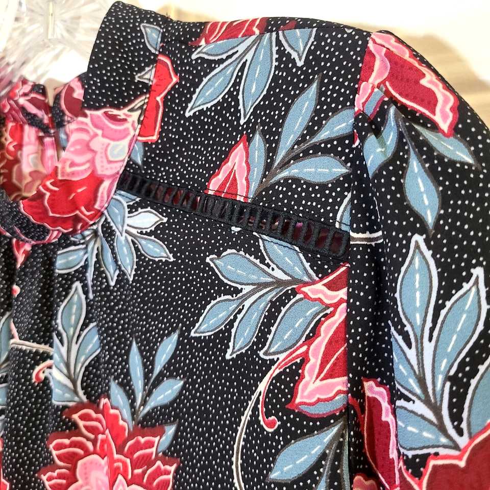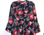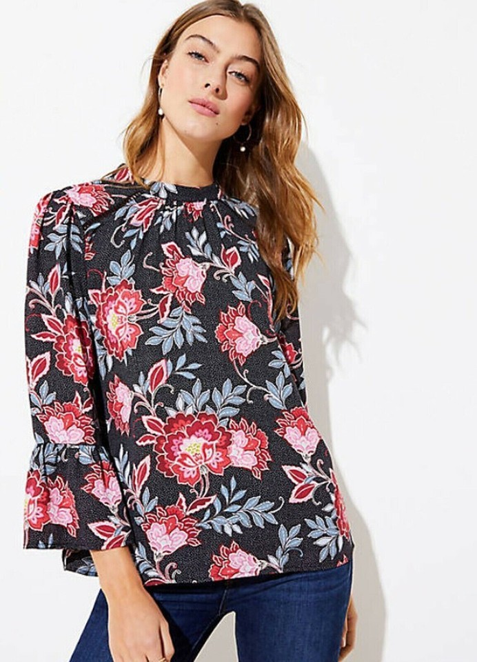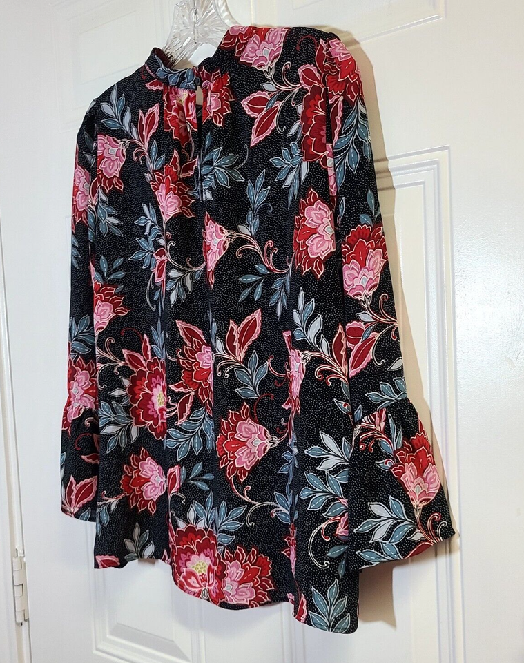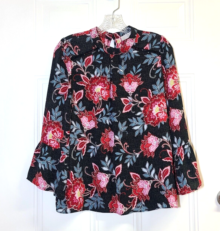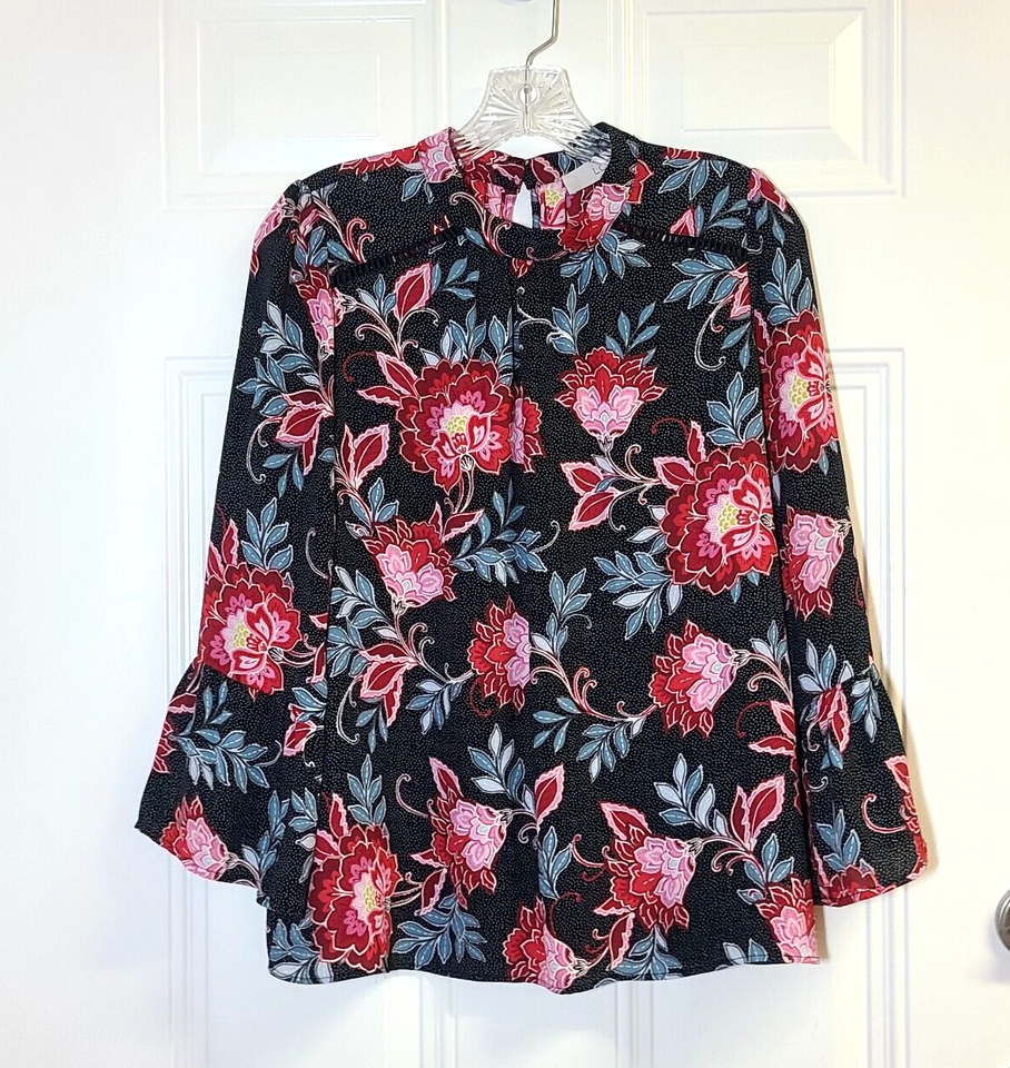 - LOFT Floral Garden Bell Sleeve Multicolor Blouse Mock Neck Size S Retro Keyhole