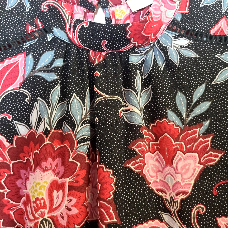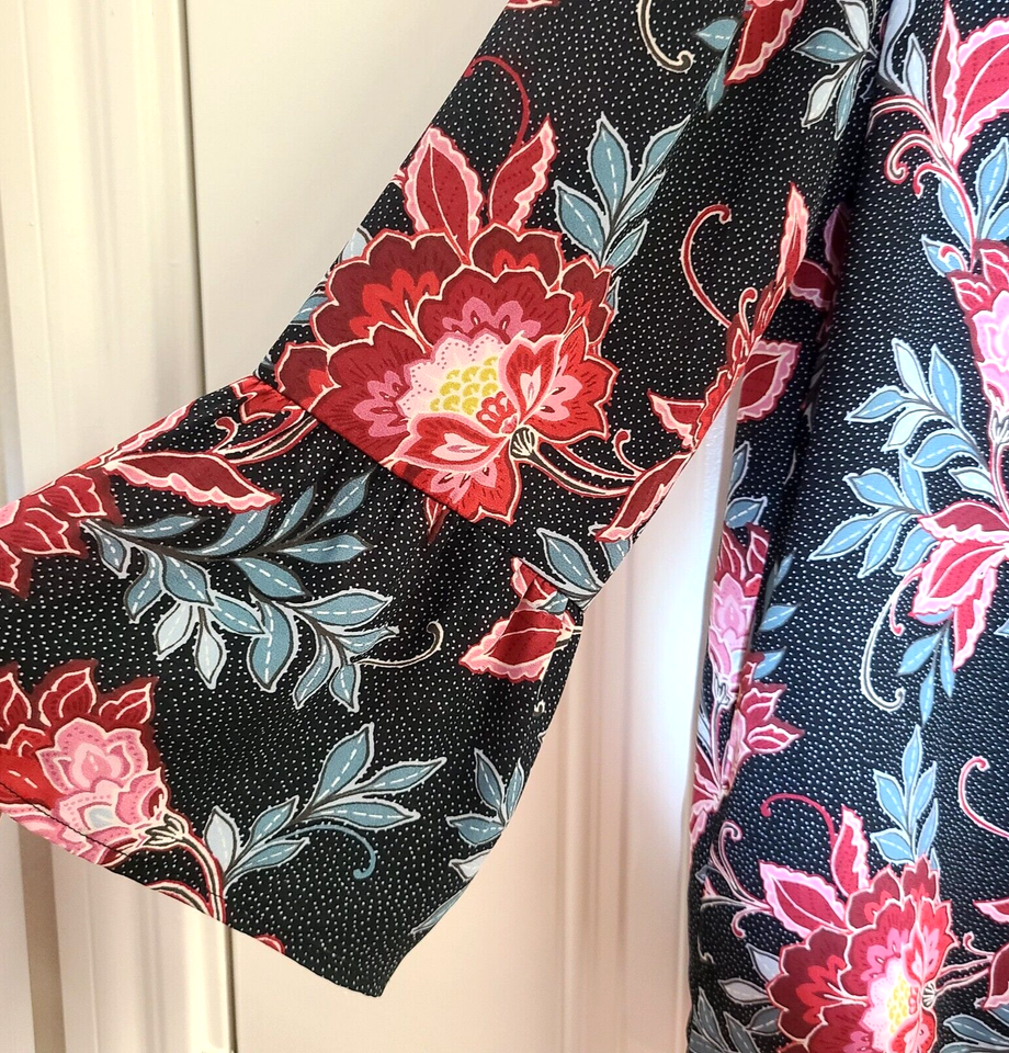 LOFT Floral Garden Bell Sleeve Multicolor Blouse Mock Neck Size S Retro Keyhole