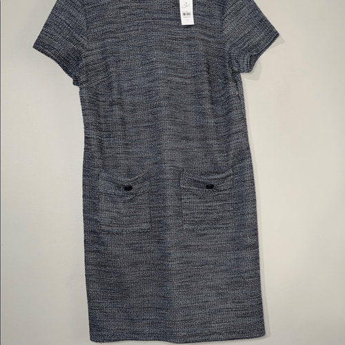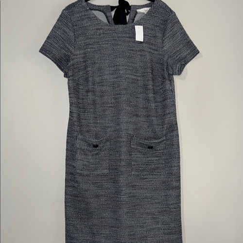 Elevate your work and casual wardrobe with this elegant gray sheath dress from LOFT. Featuring a chic bateau neckline and short sleeves, this midi dress offers a sophisticated silhouette. Its versatile style makes it a perfect choice for any occasion.