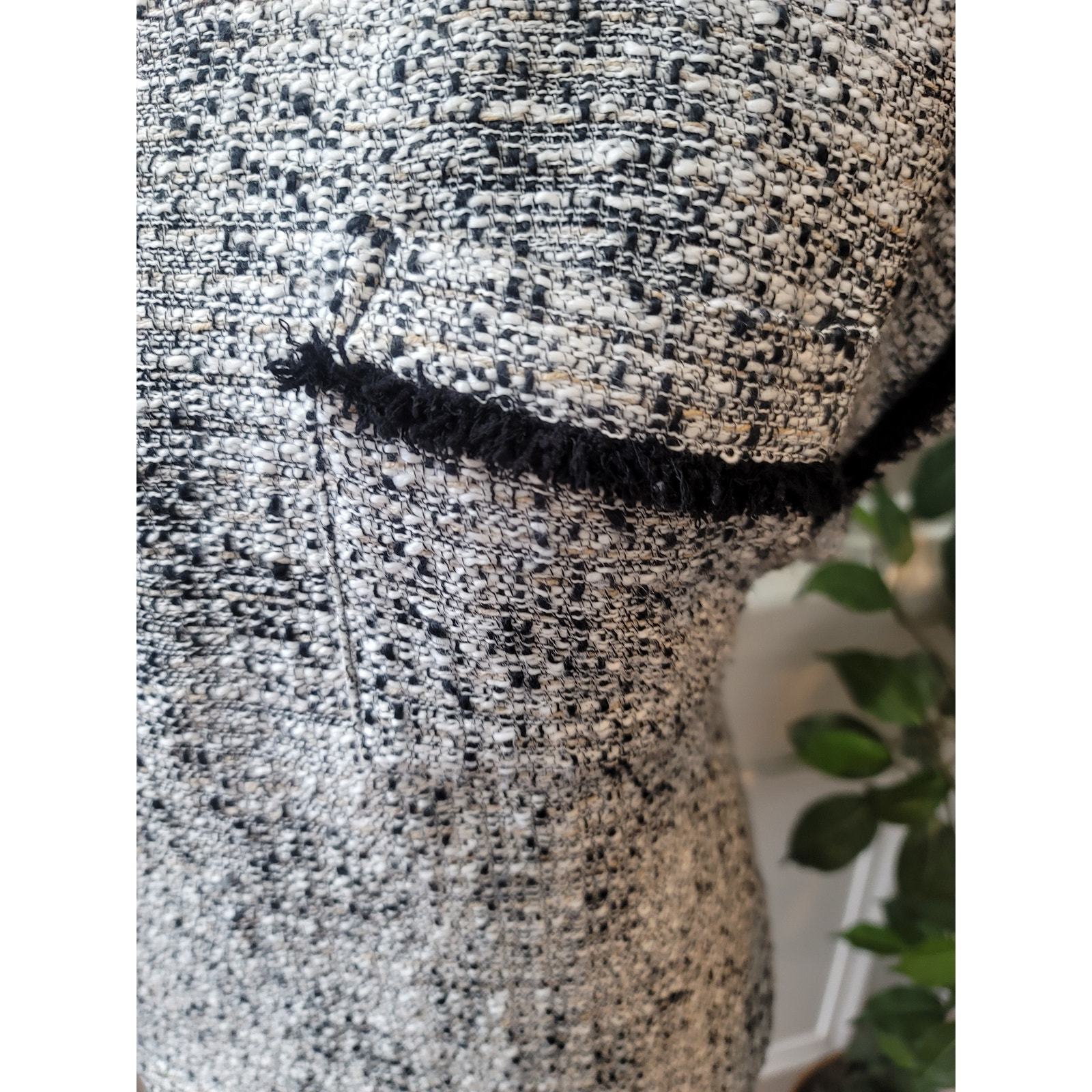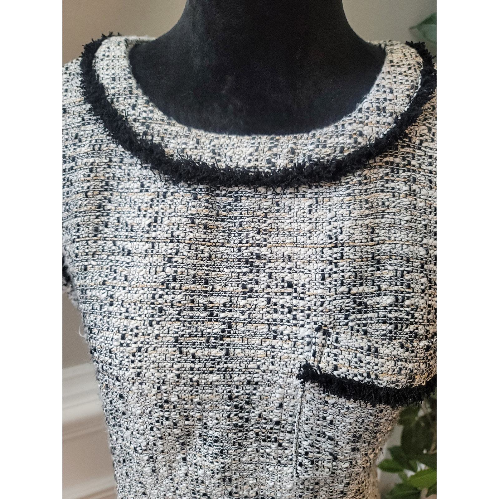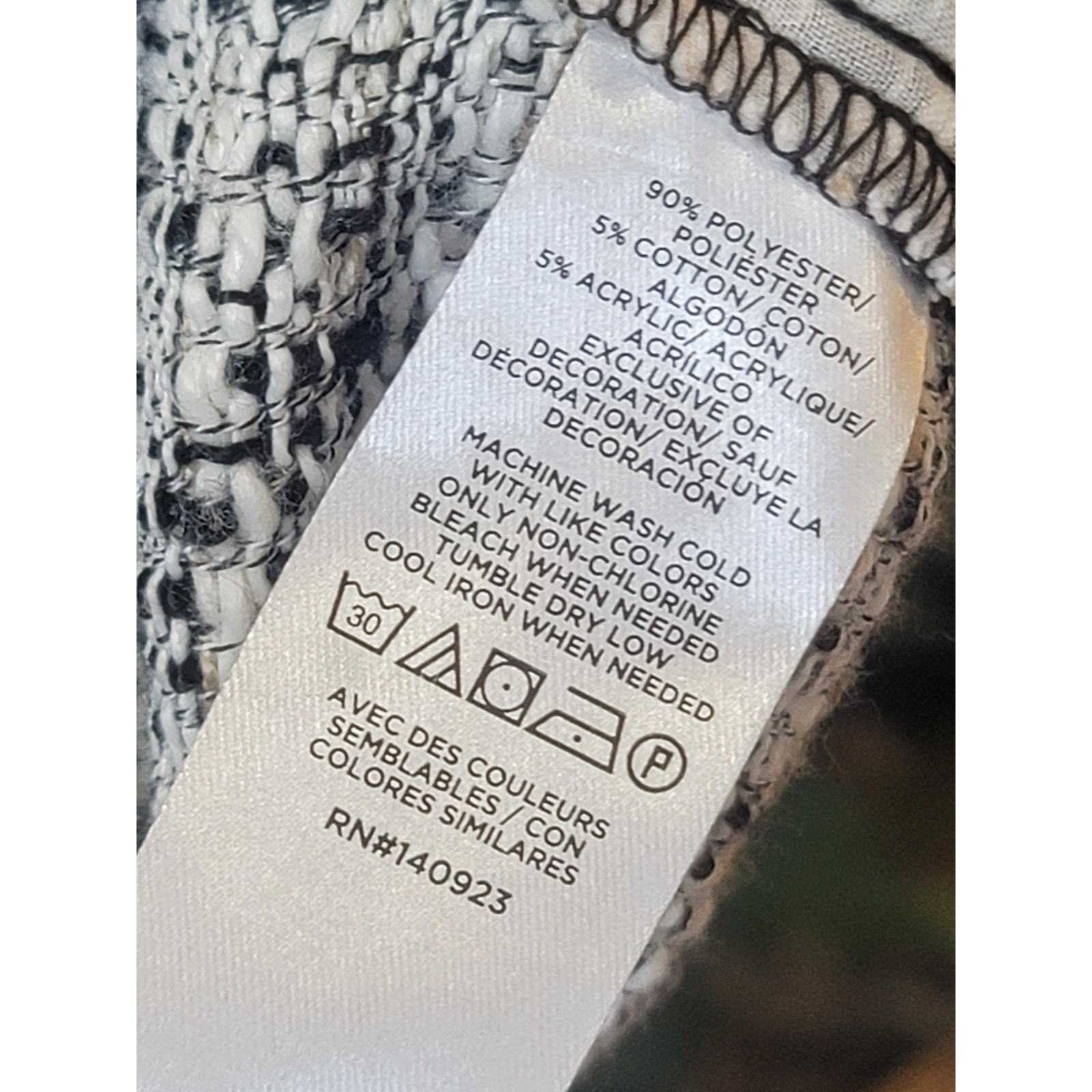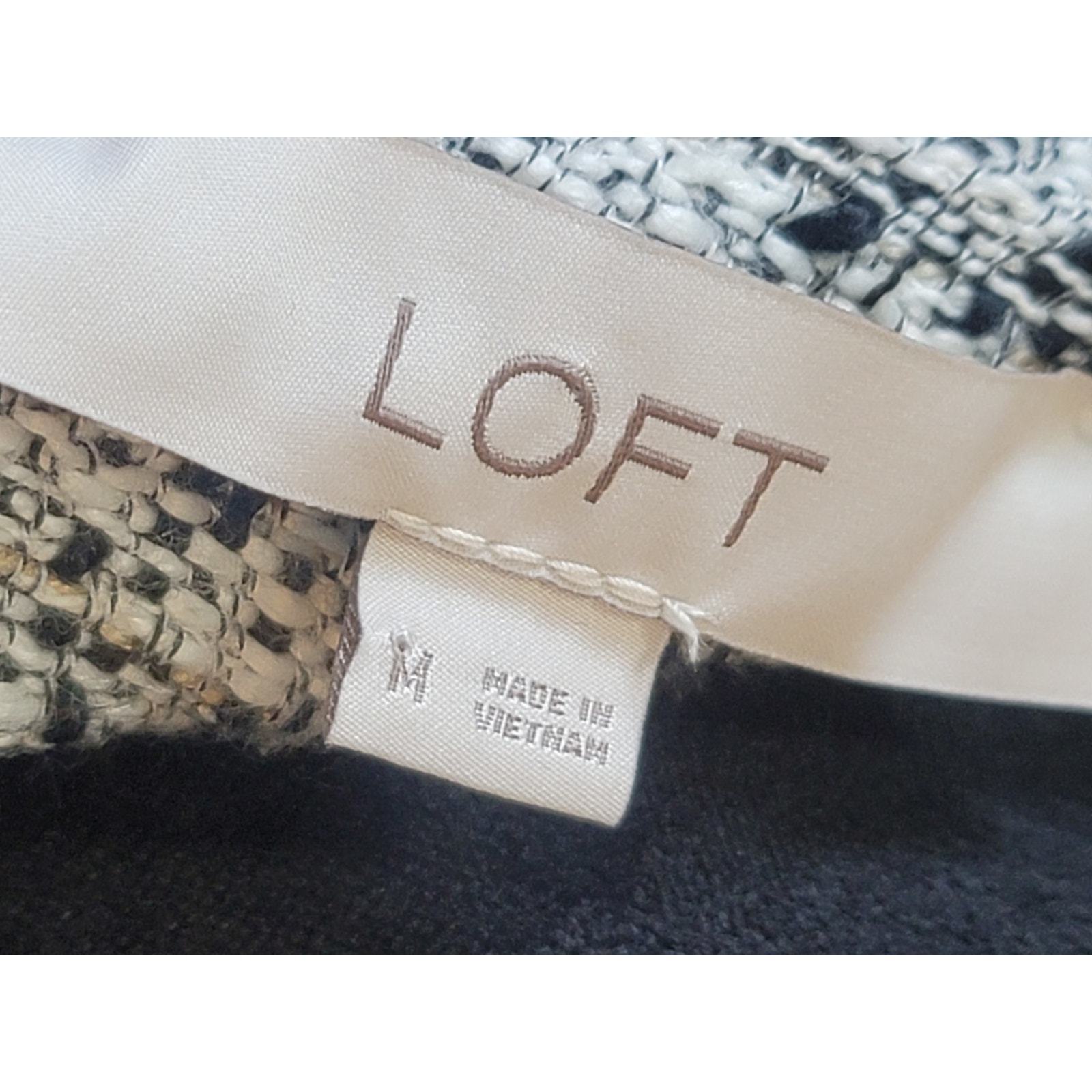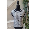 Add a touch of sophistication to your wardrobe with this stylish LOFT short sleeve top! This women's size M blouse features a classic black and white tweed knit pattern, perfect for workwear or a smart casual look. The top is in excellent condition and has been well-cared for.