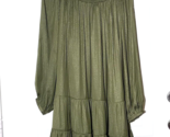 - LOFT Smocked Yoke Swing Dress Blouson Sleeves Button Cuffs Size S Tiered Olive