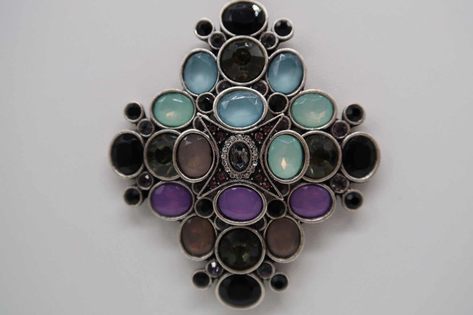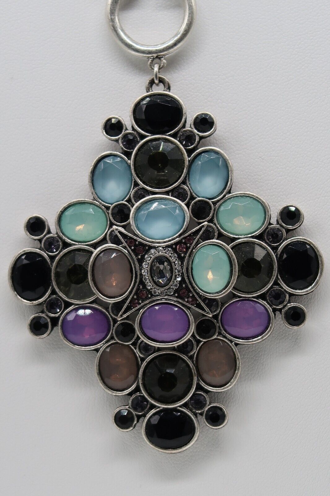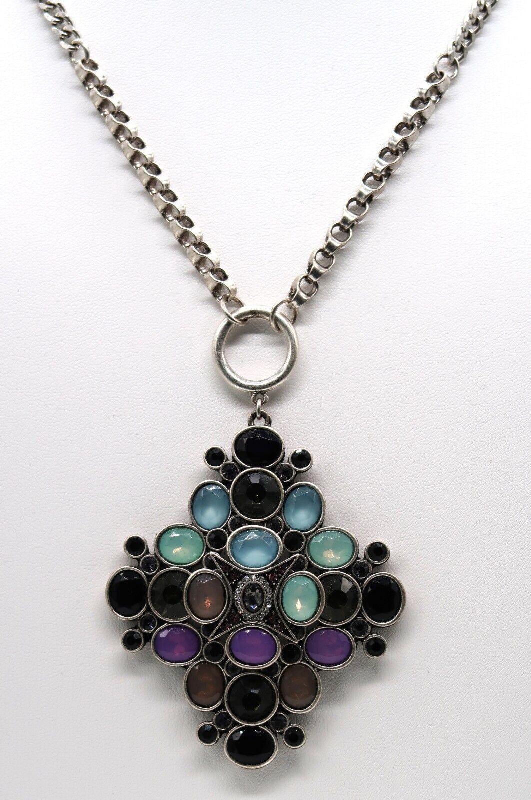 LOGO Lori Goldstein Silver Tone Necklace Pendant QVC Multicolor Blue Green Pink