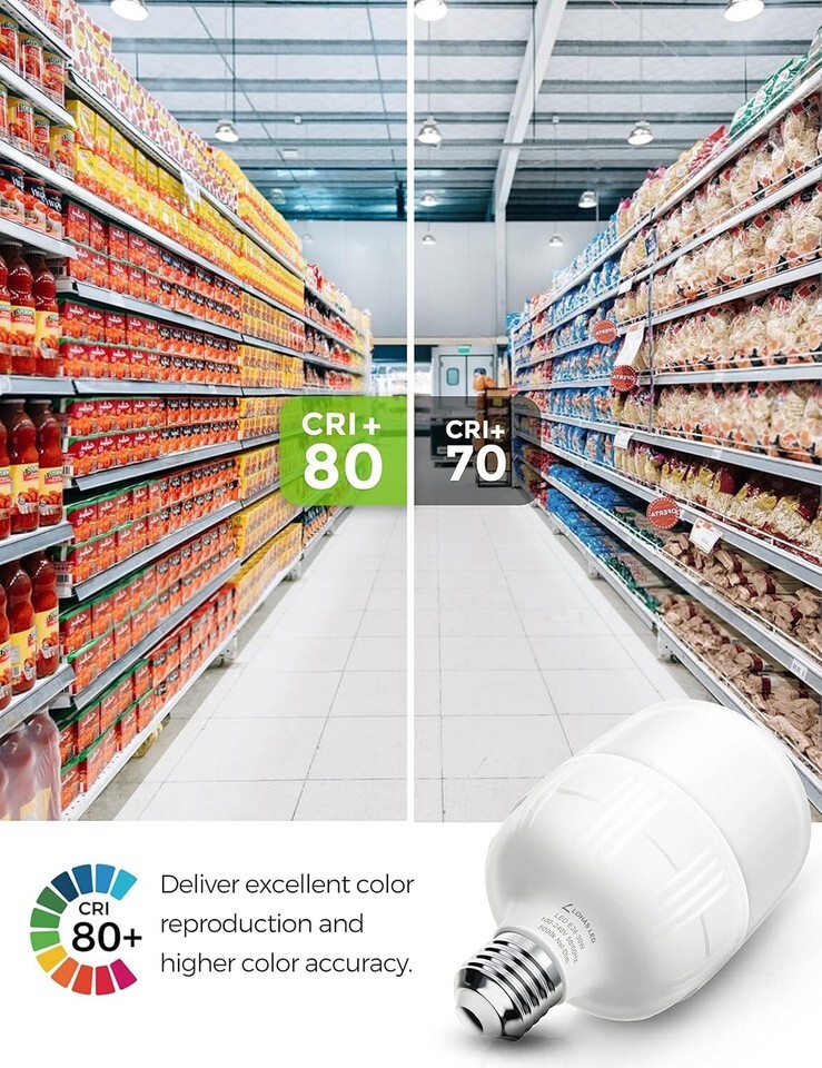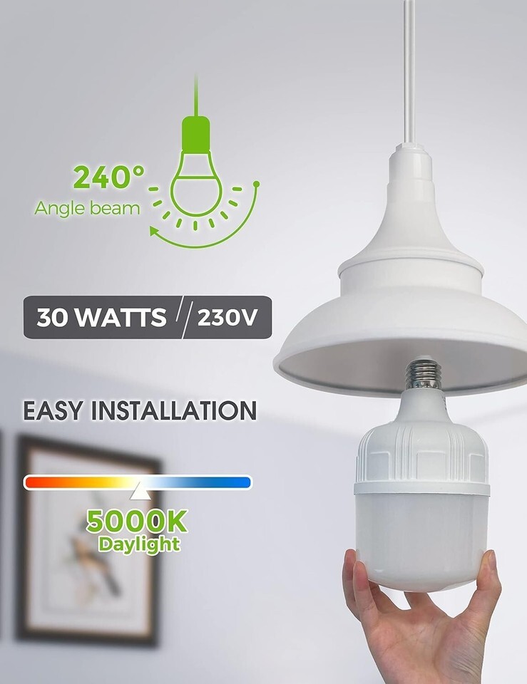 Energy-Efficient: Each 30W E26 LED bulb emits over 3500 lumens, equivalent to 250-300 watt halogen bulbs, reducing energy costs by over 85%.