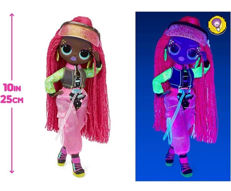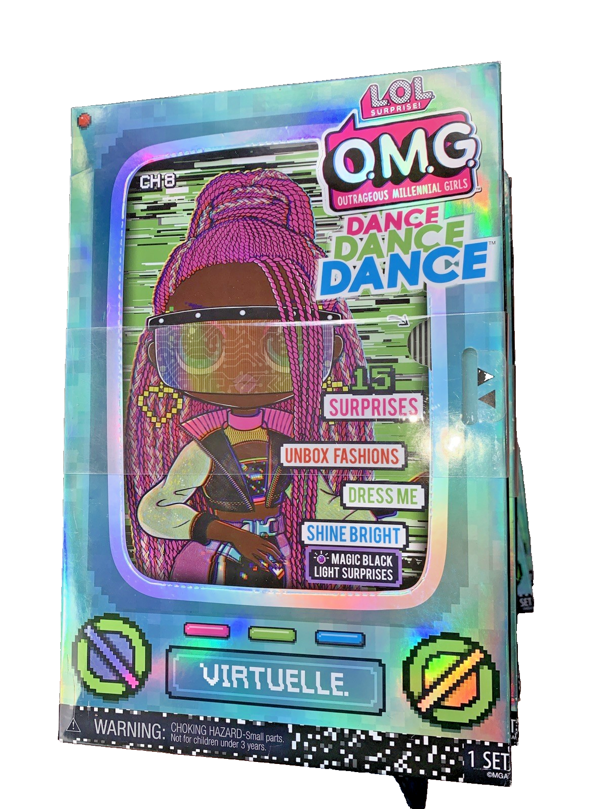 The LOL Surprise OMG Dance Dance Dance Virtuelle Fashion Doll with 15 Surprises is a 11 1/2 inch plastic doll from MGA Entertainment's L.O.L. Surprise! franchise. This fashion doll features a pink braided hair, green eyes, dark complexion, and comes in original unopened packaging. With a theme of Fashion Beauty, this girl doll offers a variety of surprises including accessories, clothes, and more, making it a fun and interactive toy for children to enjoy.