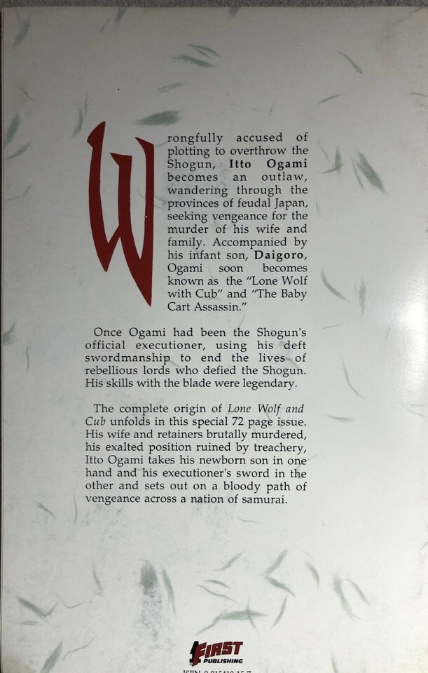 LONE WOLF AND CUB #6 (1987) First Comics origin issue Frank Miller cover FINE-