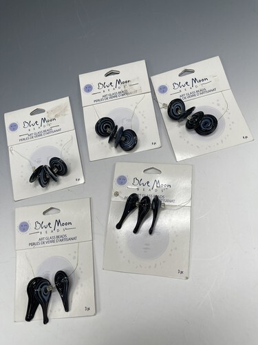 - LOT Blue Moon Art Glass Beads 2007 Disc Dagger White Black Blue C4