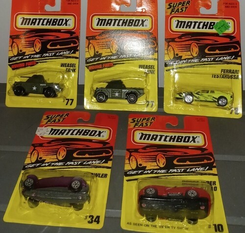 - LOT OF (5) 1995/96 1993 MATCHBOX #34 #78 #77 #10 Prowler Tank Ferrari Jeep