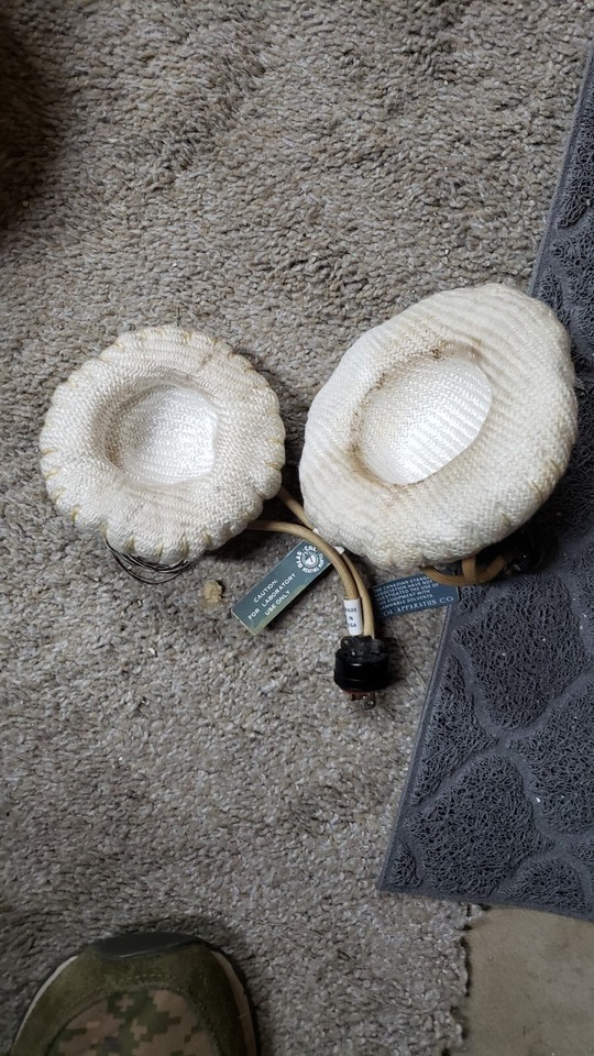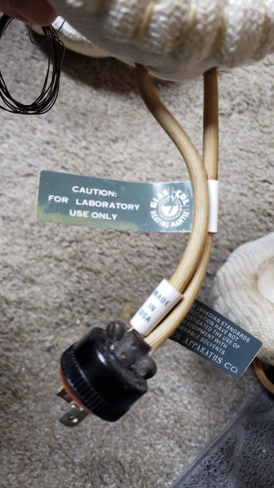 LOT of 2 Glas-Col Beaker Fabric Heating Pad Mantel Lab 50mL 115V # 0-394 ? NOTE - the one is 0-394 and the other tag fell off. It is slightly bigger - probably for 100mL, but not sure This is a great mantle for your lab needs. We got this from a high end government lab that was selling some overstock. Most all of our items work from this location. We offer 14 day money back guarantee on this unit. Does not come with beaker or any glass. Does not come with cord FREE USA Ship.
