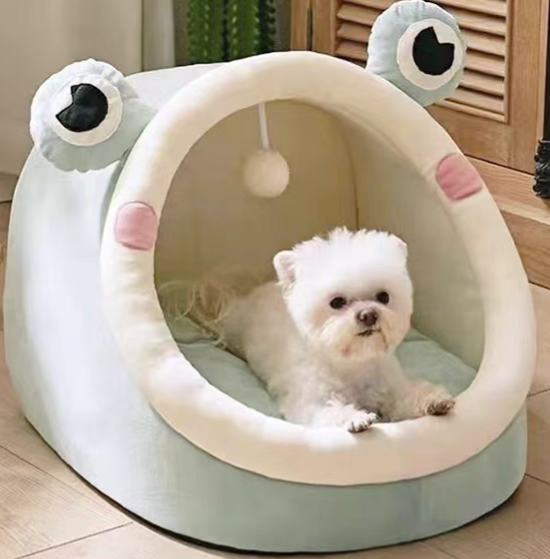Features a cute frog - shaped structure with big eyes and a hanging pom - pom, creating an attractive and playful space that pets will adore and that adds a charming touch to home decor.